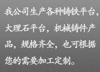 自從05年和我公司合作了感覺很好,我公司生產的劃線平臺,焊接平臺,T型槽平臺,鉚焊平臺,電機試驗平臺等系列產品,是用于工件、設備檢測、劃線、裝配、焊接、組裝、鉚焊的平面基準量具。